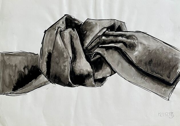 Tusche und Bleistift auf Papier
