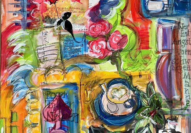Mischtechnik, Acryl, Kreide, Collage auf Leinwand
