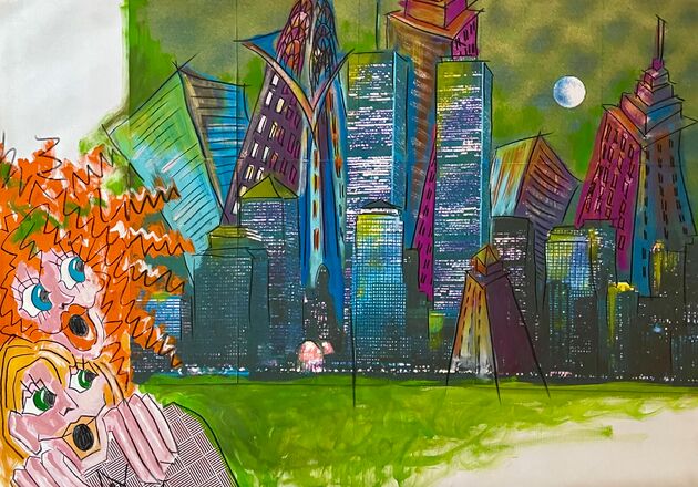 Mischtechnik, Acryl, Collage, Kreide auf Strukturpapier