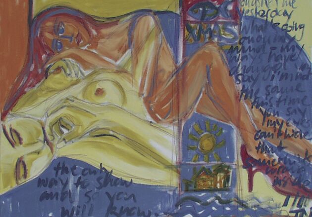 Mischtechnik, Acryl, Kreide auf Leinwand