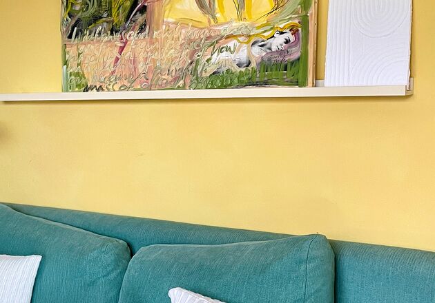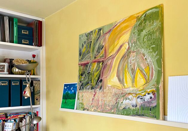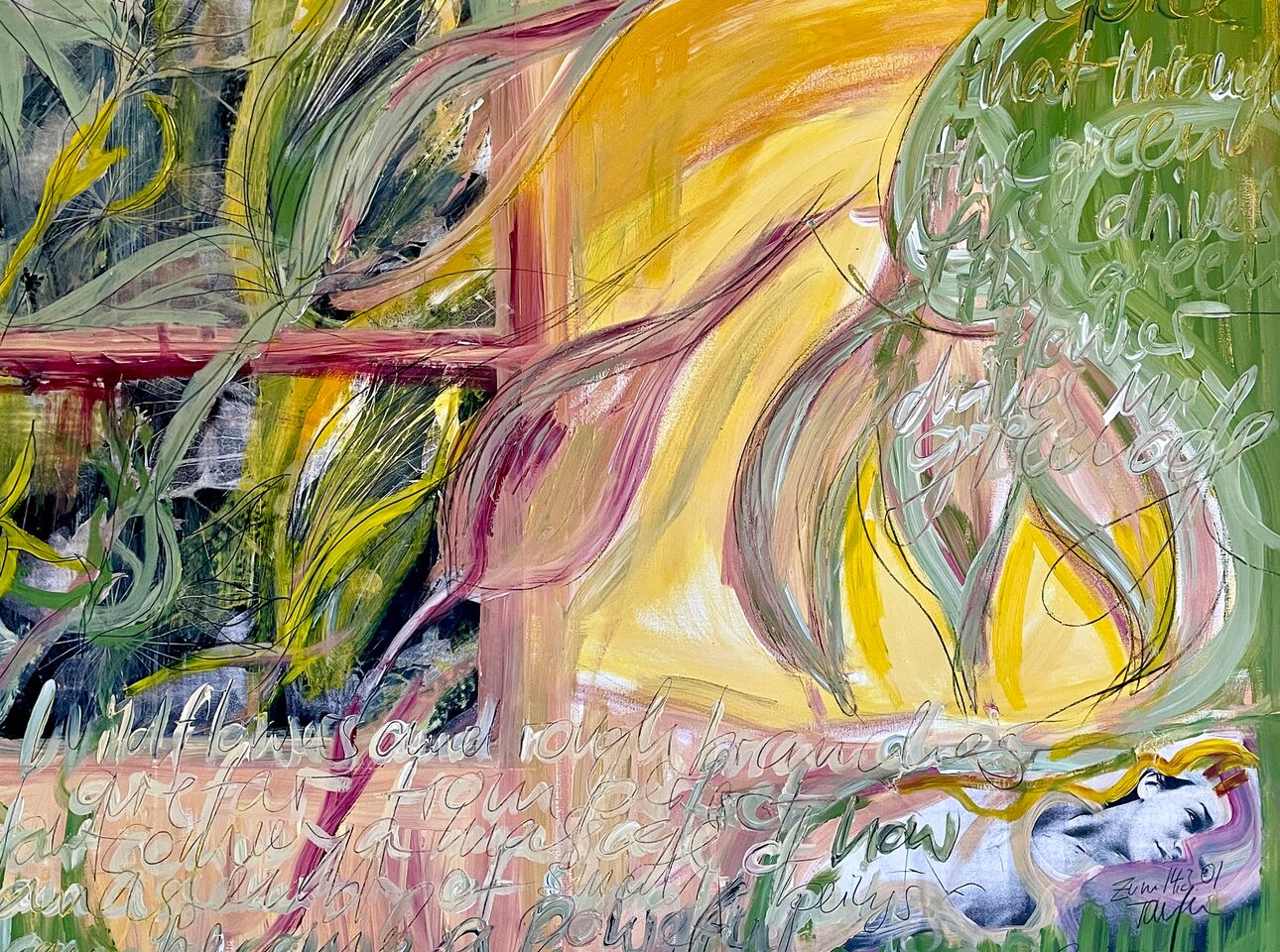 Mischtechnik, Acryl, Collage, Kreide auf Leinwand